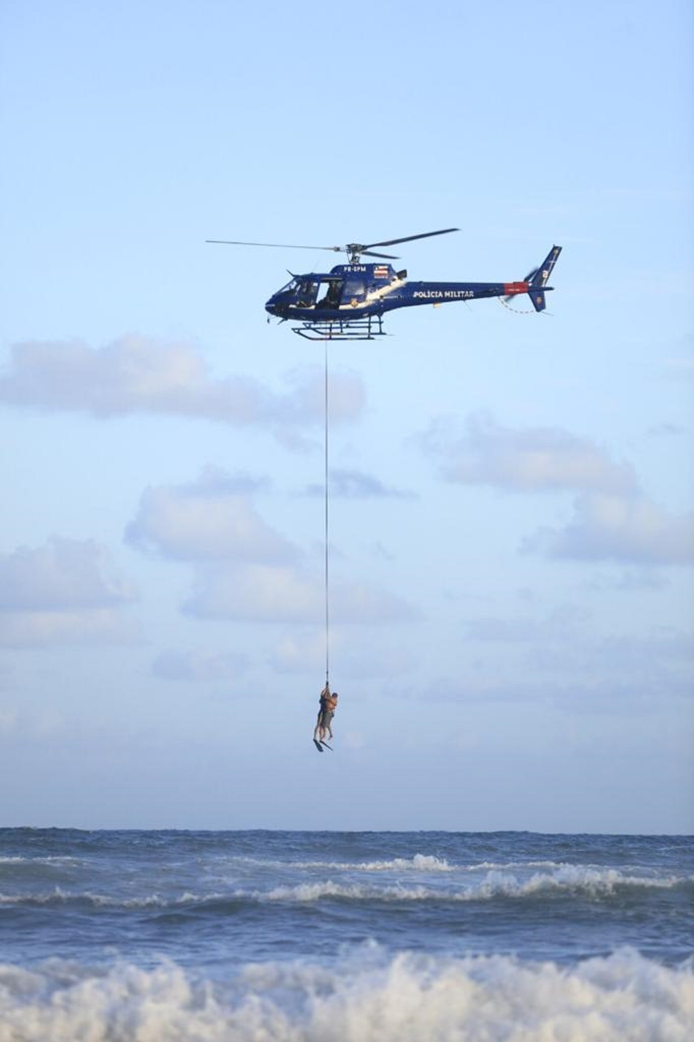 Neste final de semana dois banhistas foram salvos por um helicóptero do Graer - da Policia Militar da Bahia, que tem sede em Salvador, acionado por uma pessoa que estava na praia de Jauá, orla marítima de Camaçari (BA), onde ocorreu o incidente.