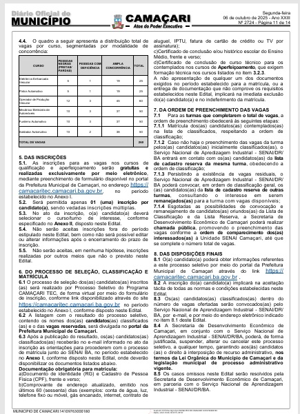 Informações na pagina 10 e 11 do Diário oficial desta segunda-feira 06/10 que pode ser acessado pelo link diario-2724.certificado.pdf