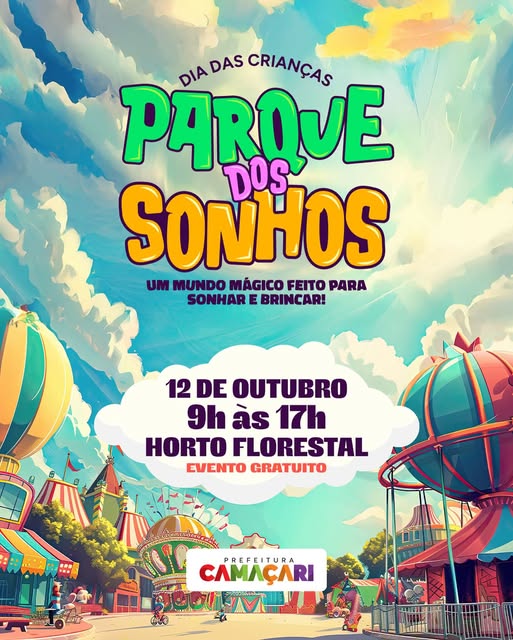 A criançada de Camaçari já tem um destino certo para o próximo domingo (12). A Praça da Simpatia vai se transformar em um verdadeiro cenário de encantamento e alegria para celebrar o Dia das Crianças, durante o evento que traz o tema “Parque dos Sonhos – Um mundo mágico feito para sonhar e brincar”.
