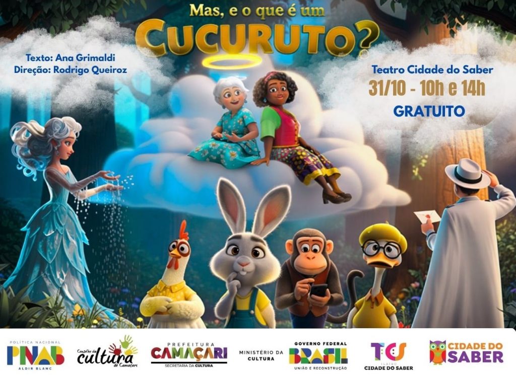 Nesta sexta-feira (dia 31), às 10h e 14h, o Teatro Cidade do Saber recebe o Espetáculo infantil “Mas, e o que é um Cucuruto?”