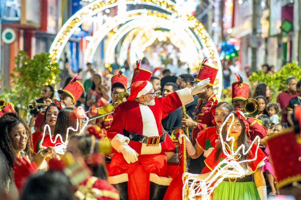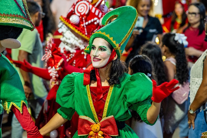 A programação começou ao som do sax, que preencheu o ambiente com clássicos natalinos, criando uma atmosfera que misturava memória e suavidade. Em seguida, o tão aguardado acendimento das luzes revelou a grandiosidade da decoração. O Natal é realizado pela Secretaria de Cultura (Secult), com o apoio da Secretaria de Governo (Segov), por meio da Coordenação de Eventos, e da Secretaria de Educação (Seduc).